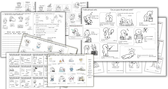 • Phrasal verbs - czasowniki frazowe w obrazkach i ćwiczeniach. Karty pracy.