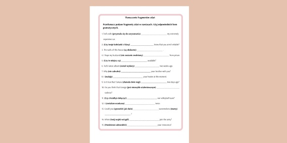 - tłumaczenie fragmentów zdań - 105 zdań